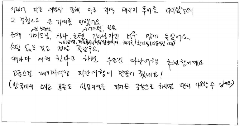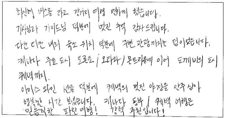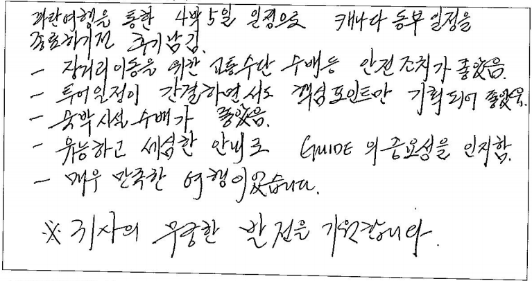 제목 | 2024년 07월 23일 출발 퀘벡 자필후기 | ||
