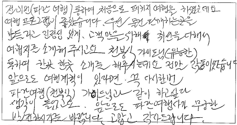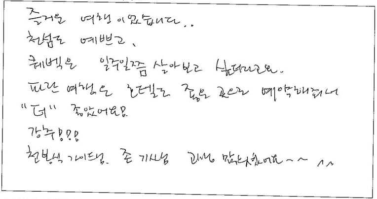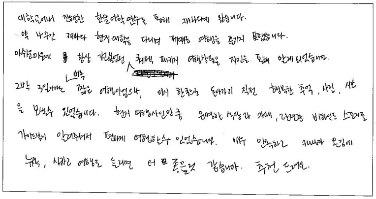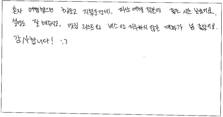 제목 | 2024년 07월 26일 출발 퀘벡 자필후기 | ||