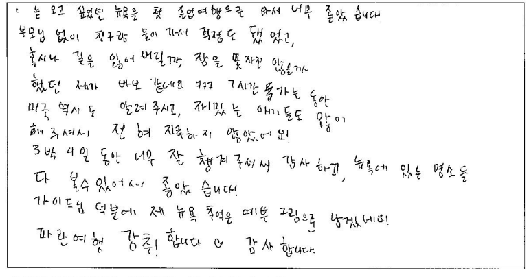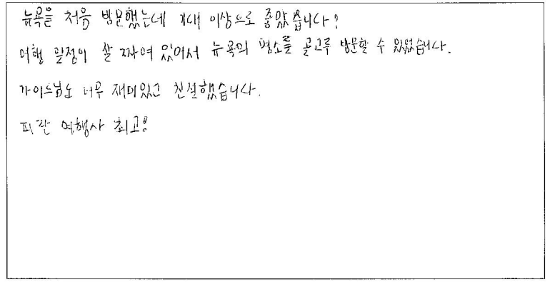 제목 | 2024년 08월 02일 출발 뉴욕만4일 자필후기 | ||