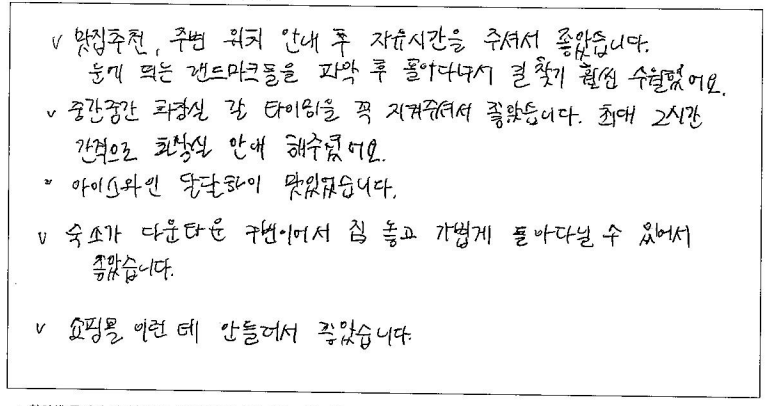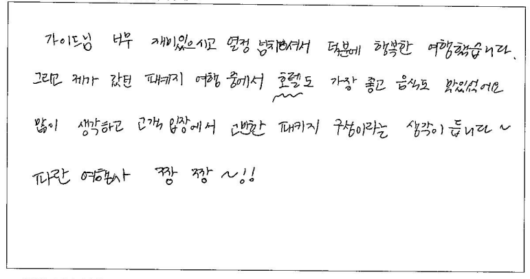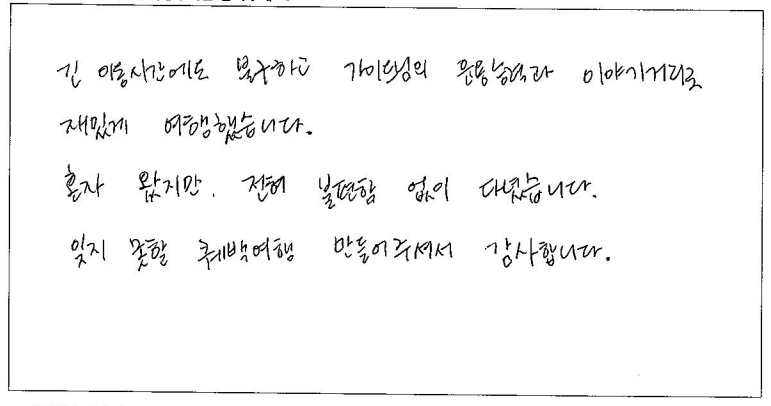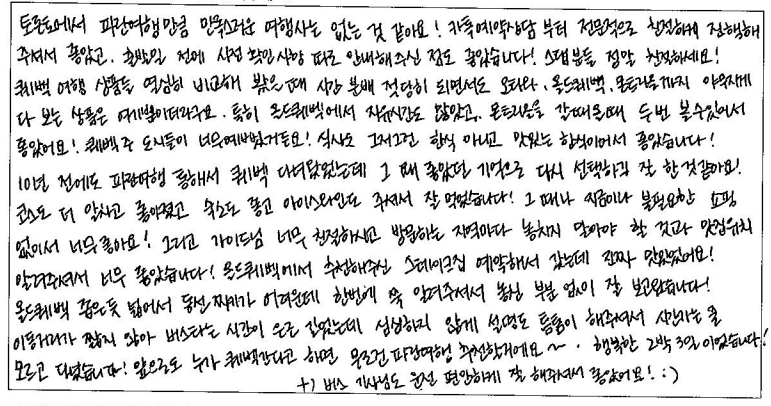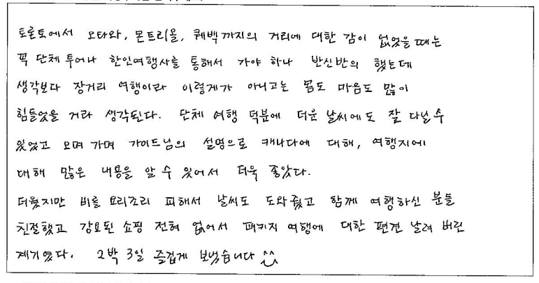 제목 | 2024년 08월 02일 출발 퀘벡 자필후기 | ||