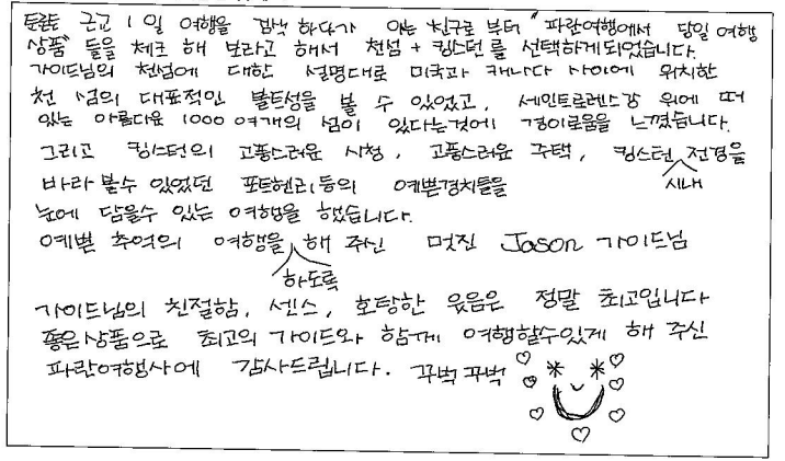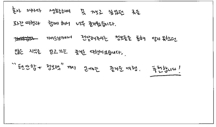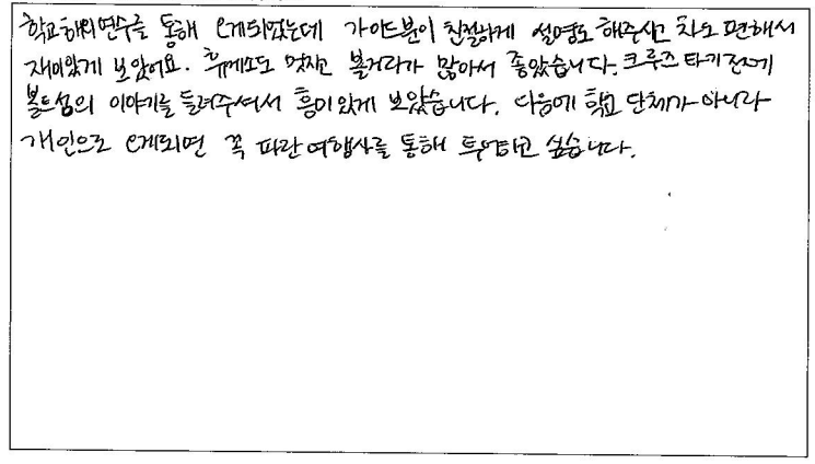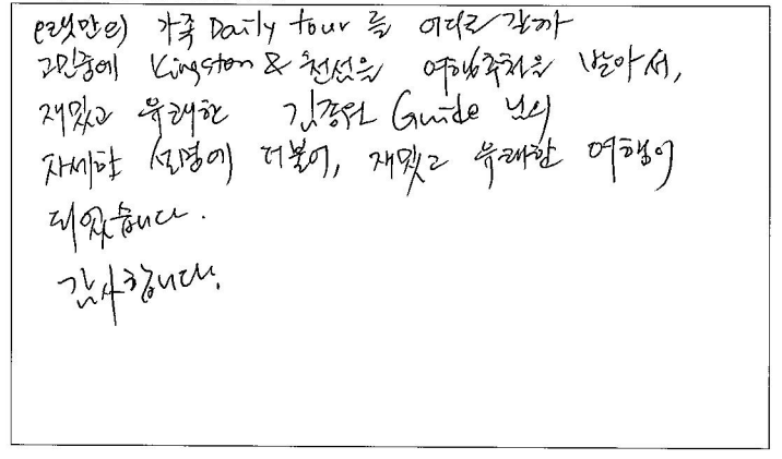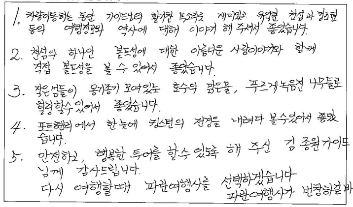 제목 | 2024년 08월 03일 출발 천섬+킹스턴1일 자필후기 | ||