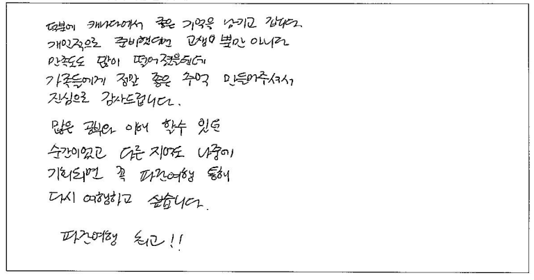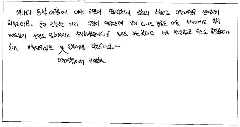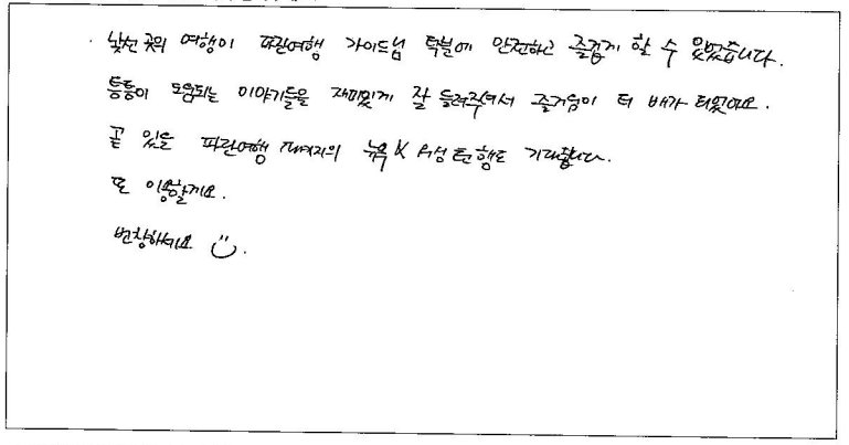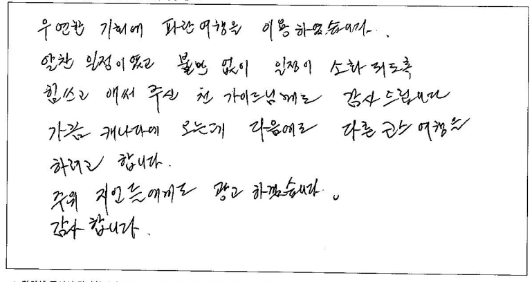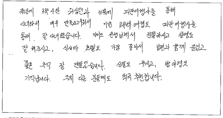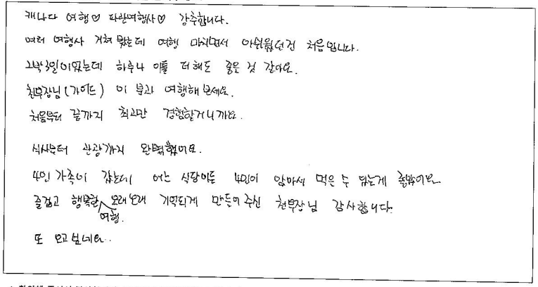 제목 | 2024년 08월 09일 출발 퀘벡 자필후기 | ||